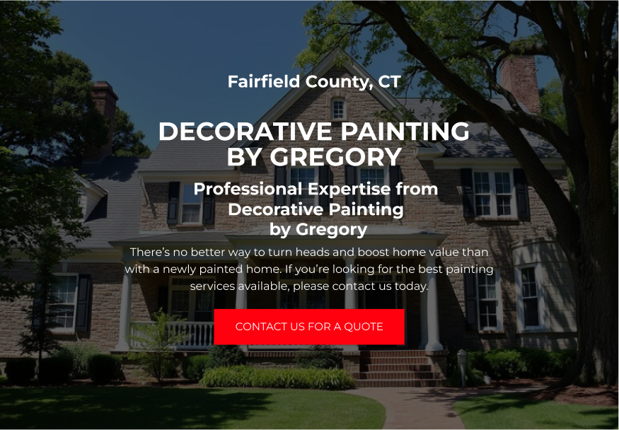 For more than 25 years Decorative Painting by Gregory. has been the trusted choice for homeowners across Fairfield County seeking a reliable paint contractor. Our commitment to delivering excellent craftsmanship at reasonable prices, along with our dedication to respecting both our clients and their homes, has established us as a leading option for residential property owners in these Fairfield County cities: